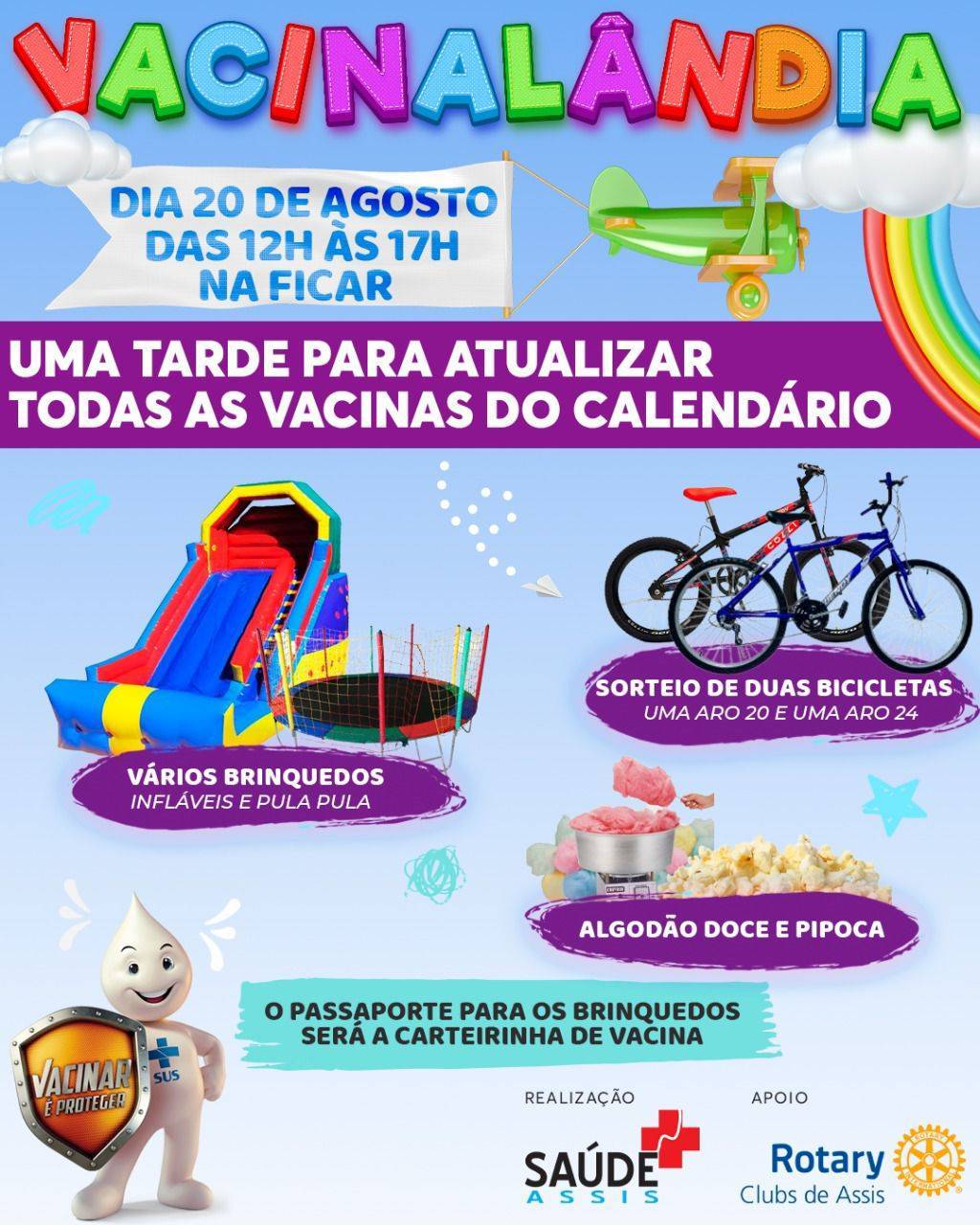 A Vacinolândia teve brinquedos, algodão doce e pipoca e no final, sorteio de 2 biscicletas para quem se vacinou.